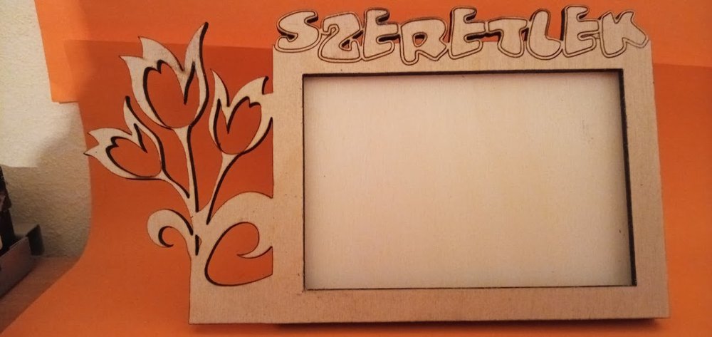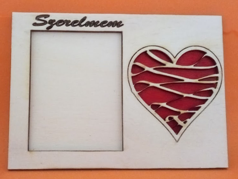 Felirattal és vágott mintával ellátott képkeret (kérésre gravirozott fotóval is)